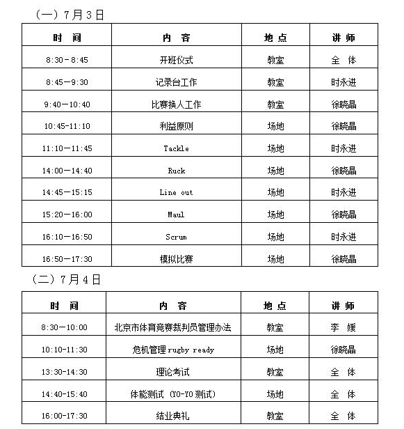 关于举办2018年北京市橄榄球项目裁判员晋级培训班的通知